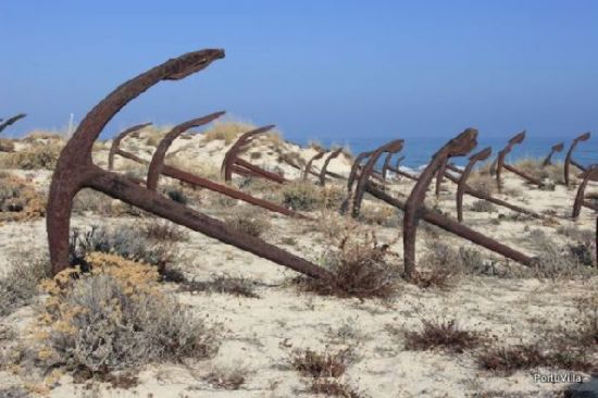 In the dunes of Tavira island, in Portugal is an odd little graveyard. On this sandy beach you’ll find impressive anchors. It was built in remembrance of the glorious tradition of tuna fishing with large nets fixed with these anchors.